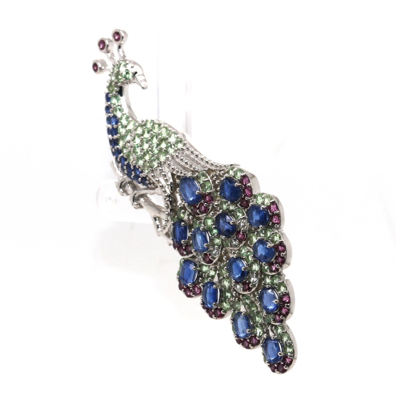 This 925 Sterling Silver Kyanite, Tsavorite & Rhodolite Brooch is a refined blend of color, craftsmanship, and timeless elegance—an exceptional addition to any fine jewelry collection.