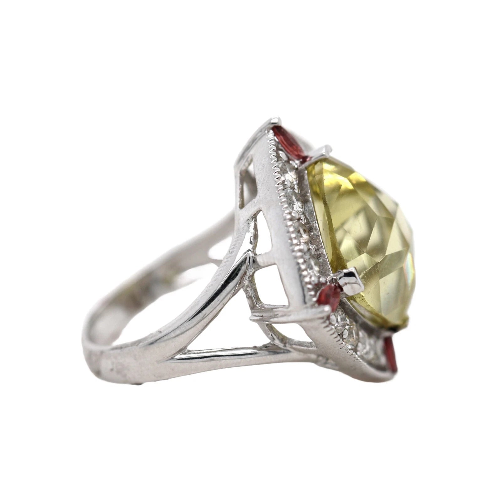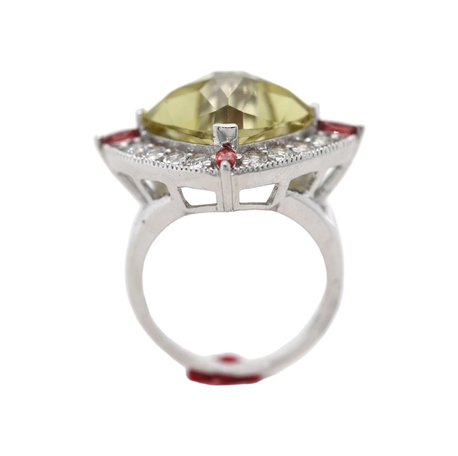 925 Lemon Quartz - Garnet - White Topaz Ring - 10DOT50 cts