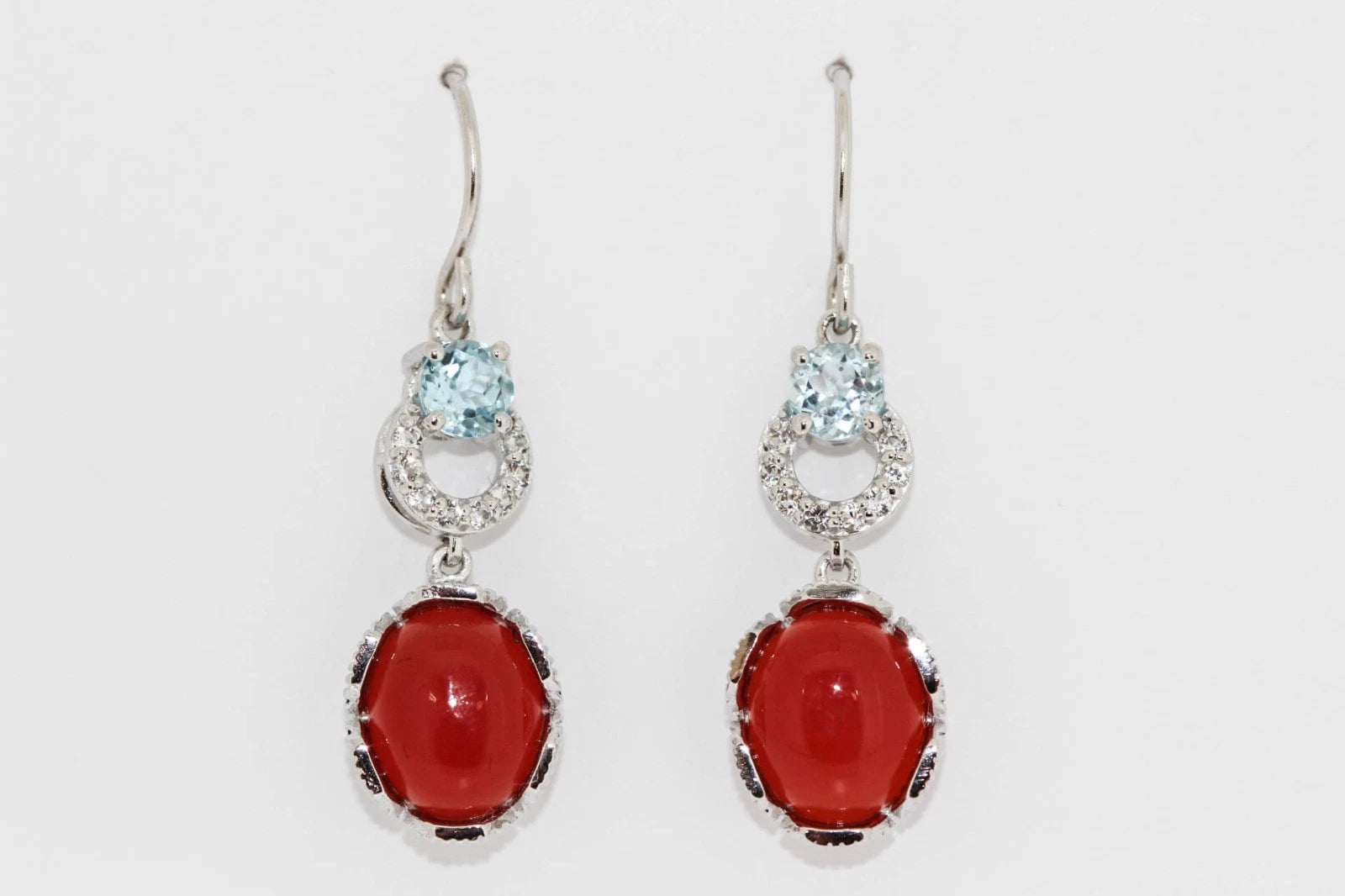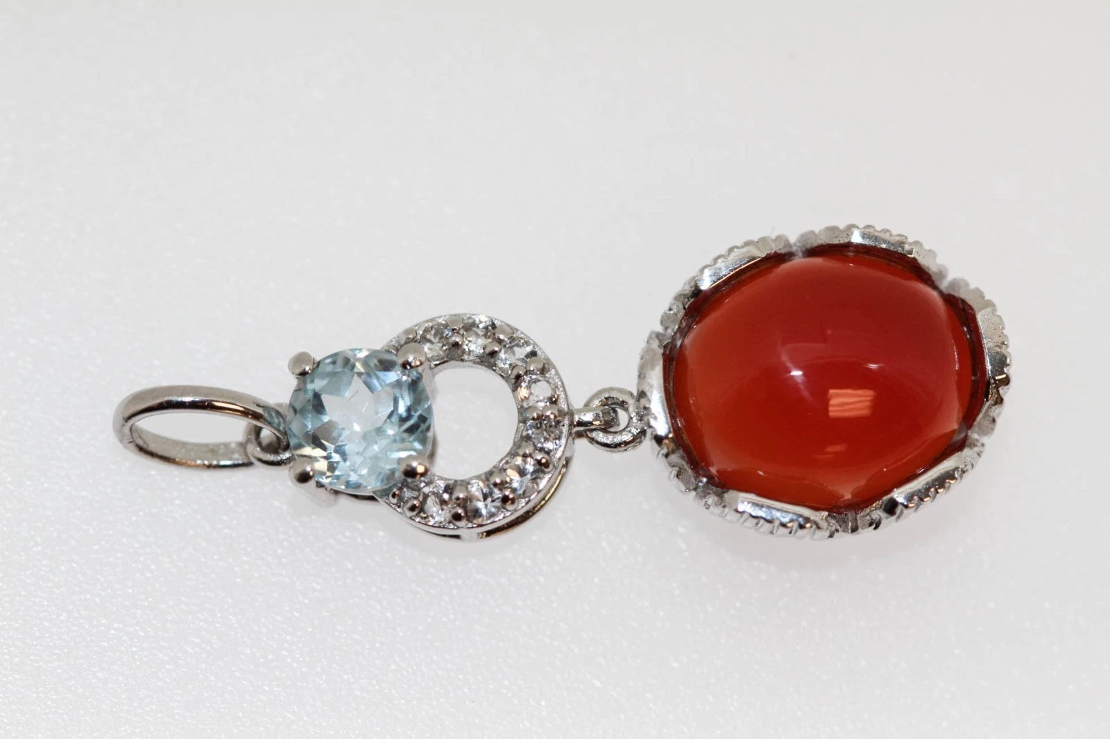 925 Orange Chalcedony-Blue Topaz-White Topaz-Earring-Pendant-12DOT99 cts