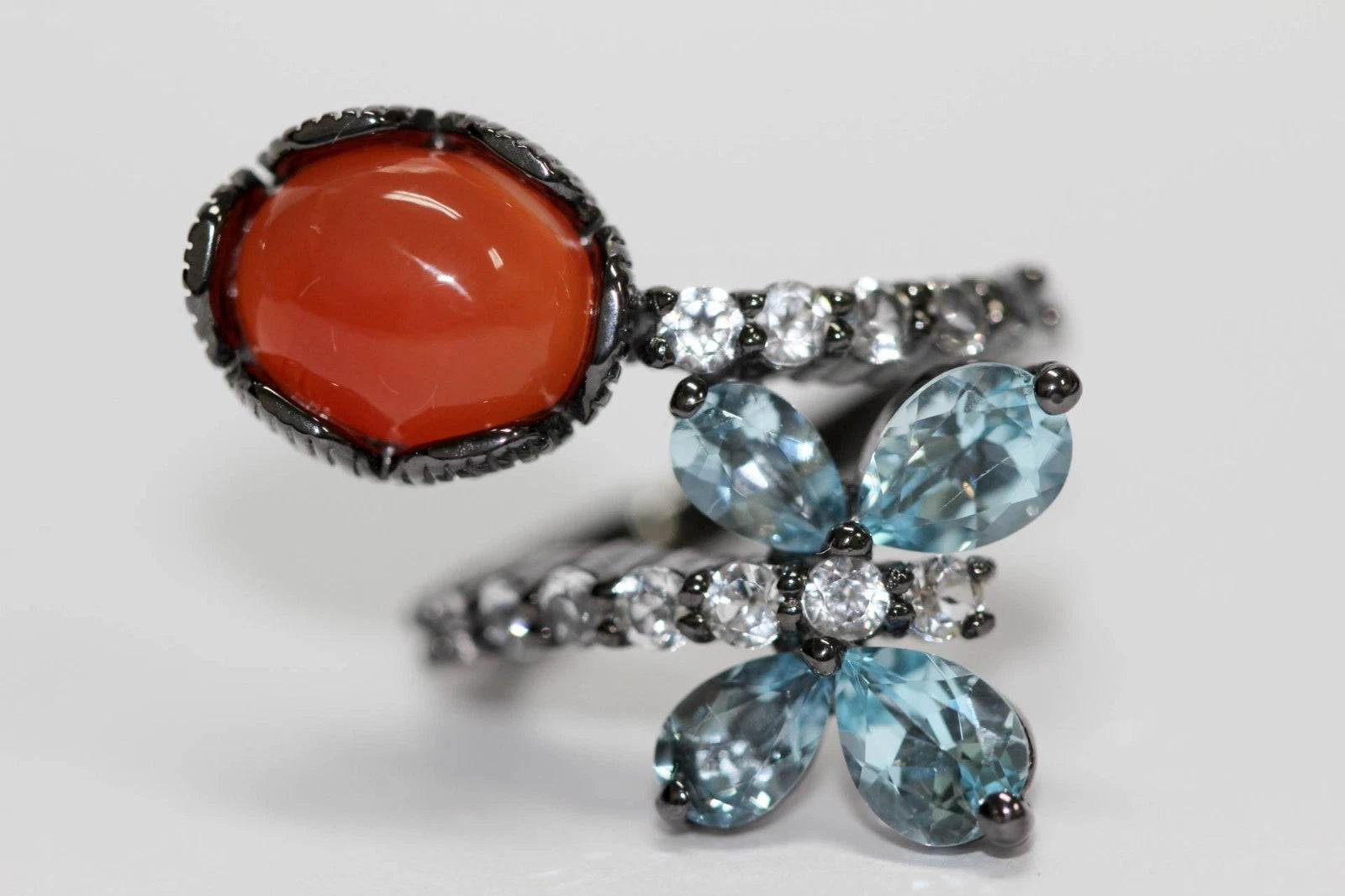 925 Orange Chalcedony - Blue Topaz - White Topaz Set - 16DOT67 cts