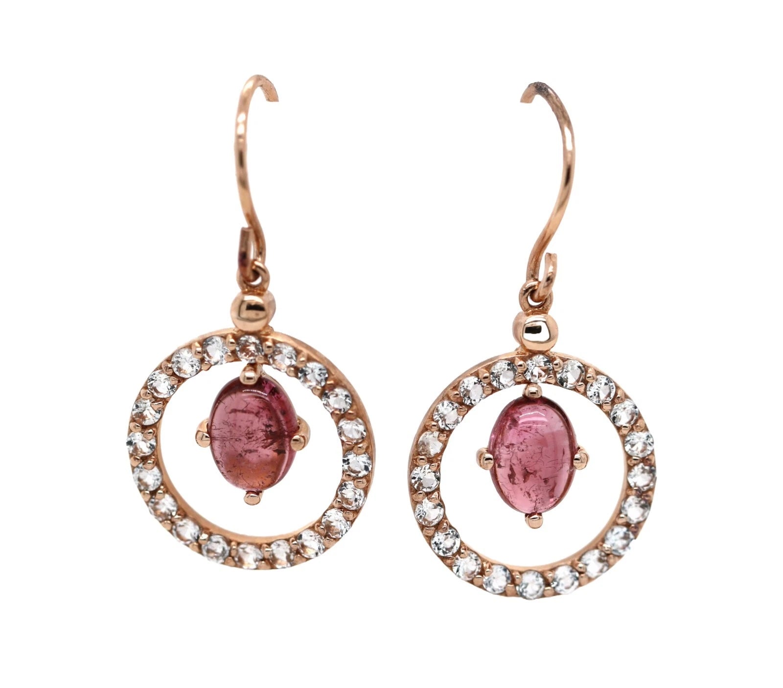 925 Rose Vermeil Pink Tourmaline - White Topaz Earring -4DOT44 cts