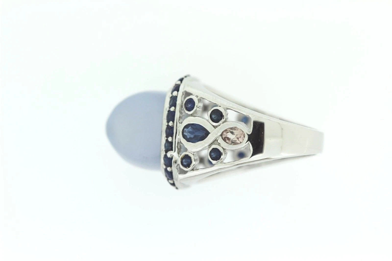 925 SS Blue Chalcedony - Blue Sapphire - Color Change Garnet Ring - 15DOT40 cts