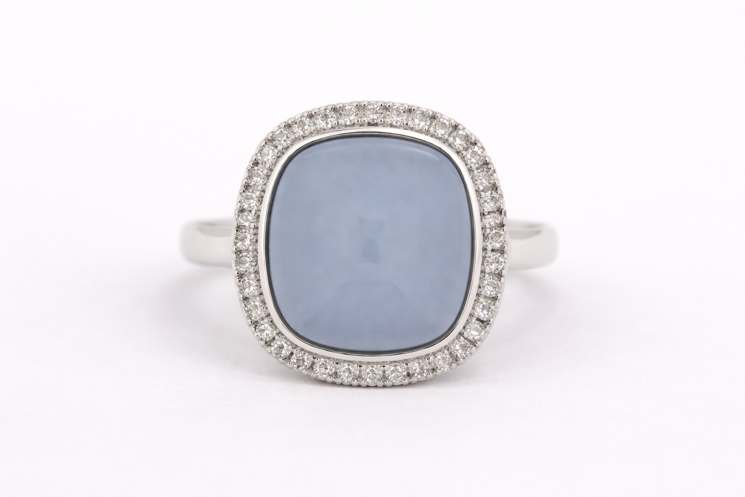925 SS Blue Chalcedony - White Topaz Ring - 9DOT75 cts