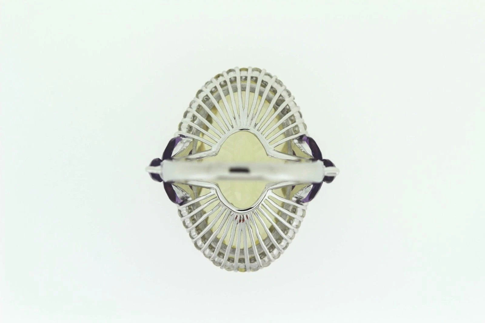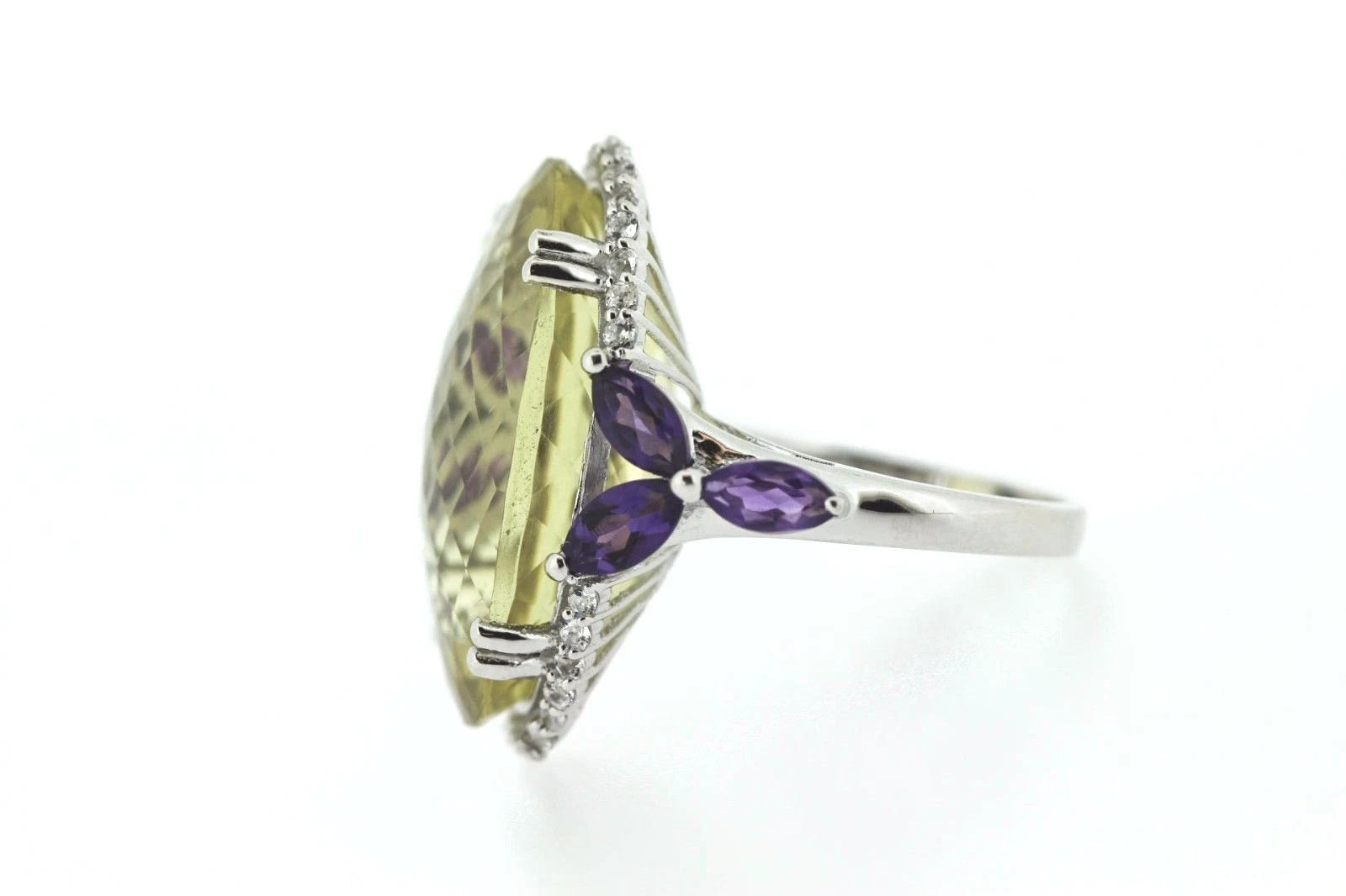 925 SS Lemon Quartz - Amethyst - White Topaz Ring - 21DOT50 cts