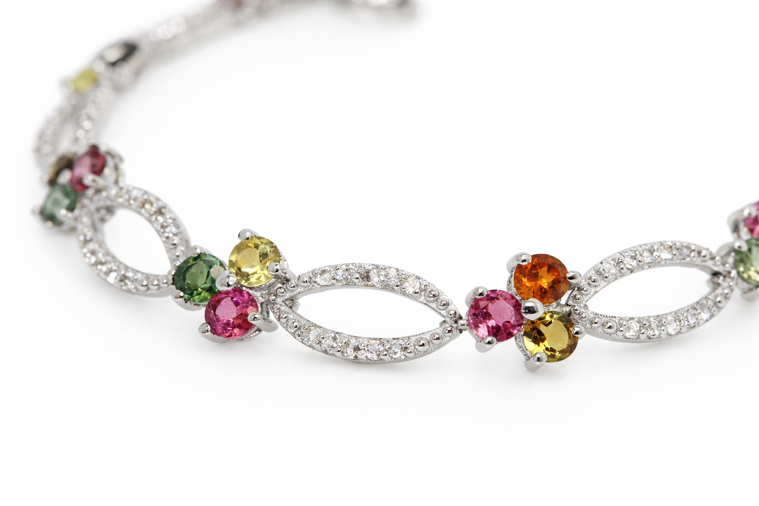 Add a vibrant touch of elegance to your jewelry collection with this 925 sterling silver multicolor tourmaline and white topaz bracelet, designed for refined style and everyday wear. Showcasing a beautiful array of multicolor tourmaline gemstones, this bracelet is accented with the brilliant sparkle of white topaz, creating a colorful yet sophisticated look.