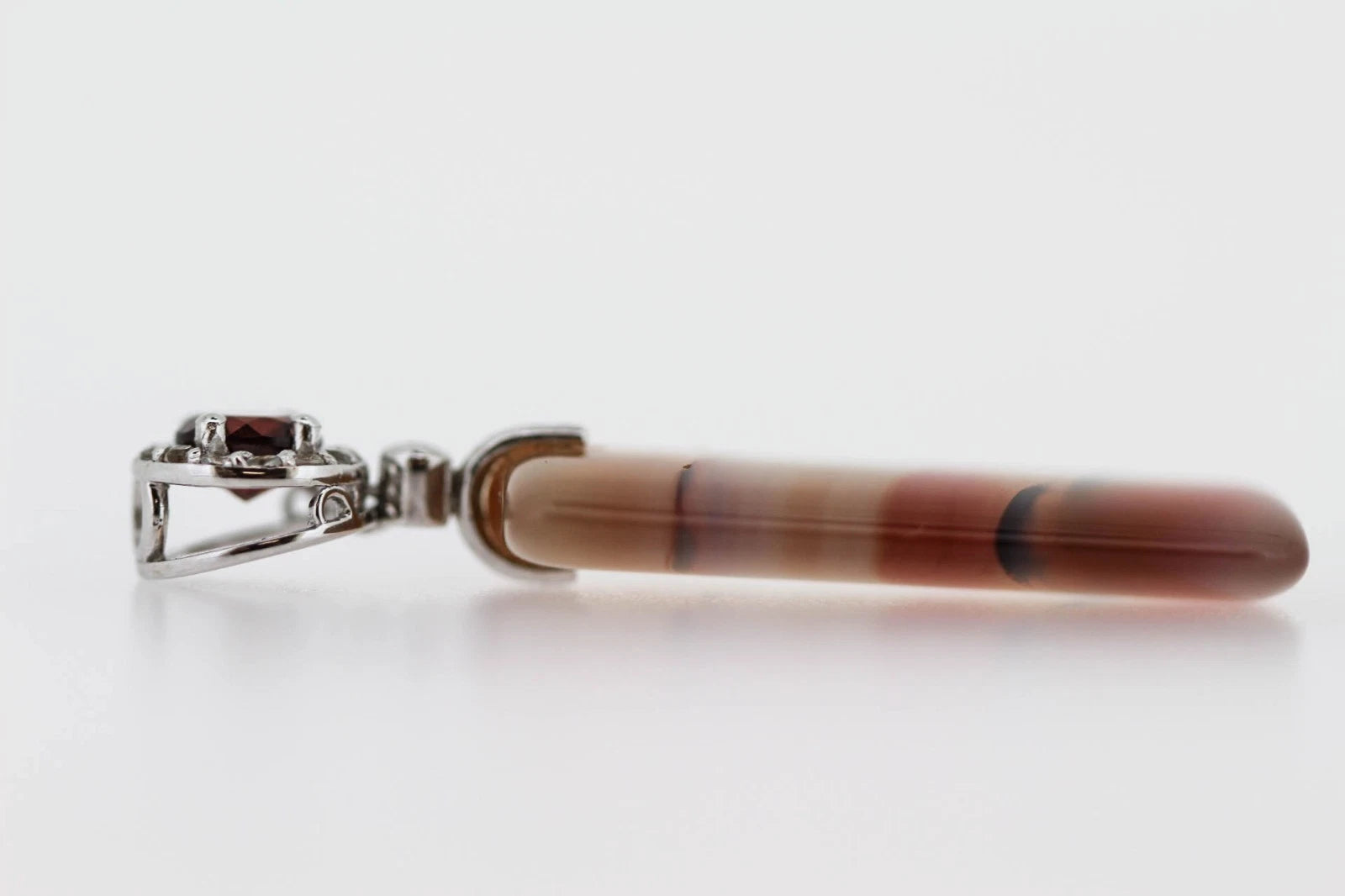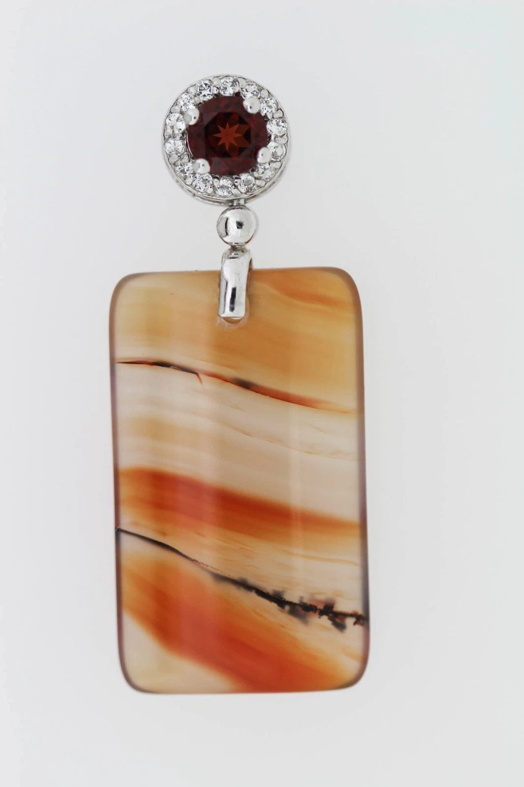 This 925 sterling silver agate pendant with white topaz offers refined craftsmanship, balanced contrast, and timeless elegance.