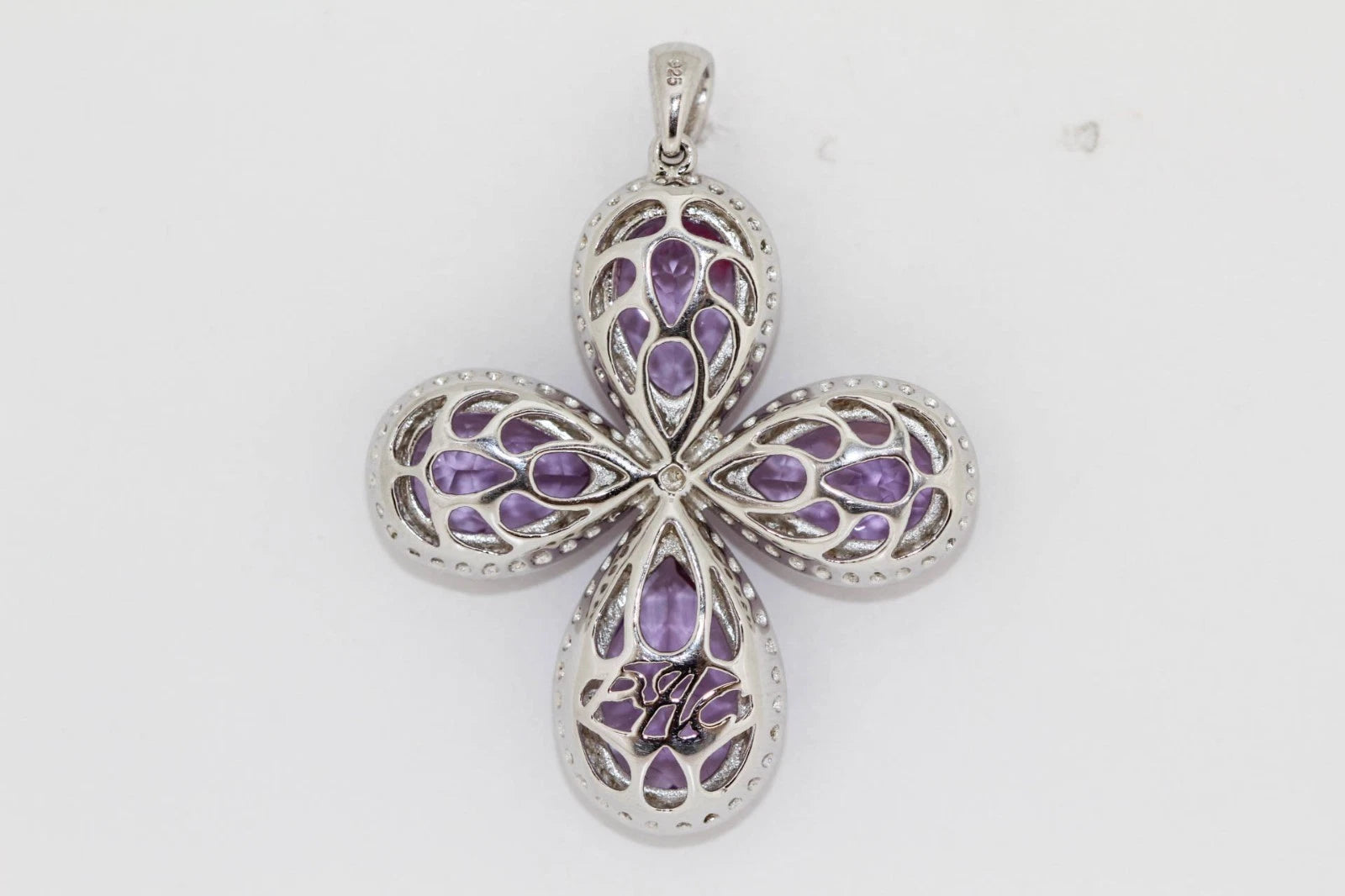 925 Sterling Silver Amethyst /White Zircon Pendant ( 15.92 cts)