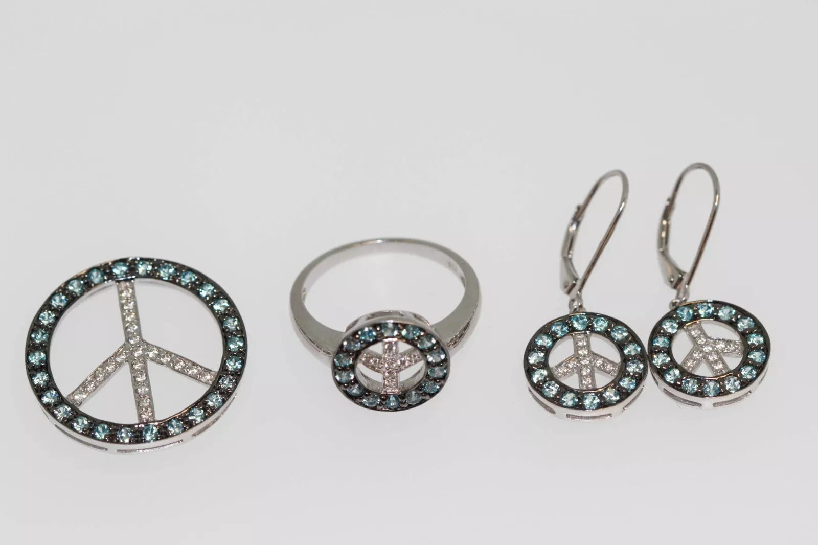 925 Sterling Silver Blue Topaz-White Topaz Ring-Earring-Pendant Set-3DOT22 cts
