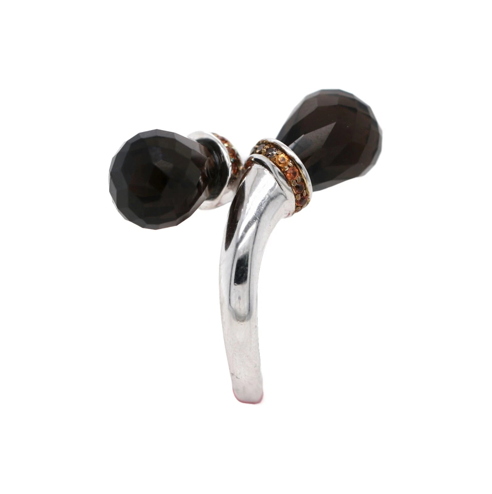 Whether worn alone as a statement piece or styled with minimalist accessories, this smoky quartz and orange sapphire ring delivers elegance, color, and enduring charm.