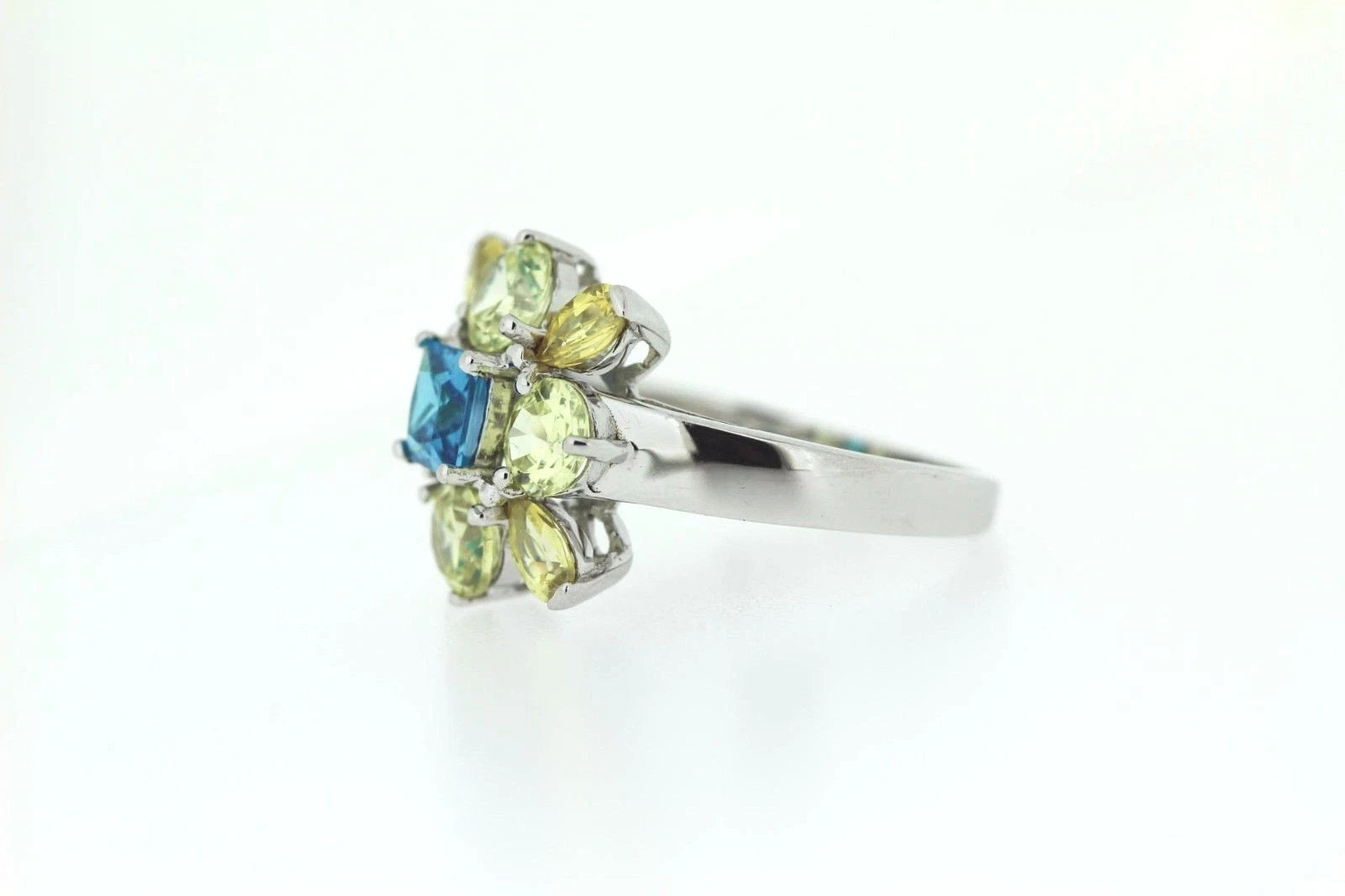 925 Yellow - Blue Cubic Zirconia Ring - 5DOT50 cts