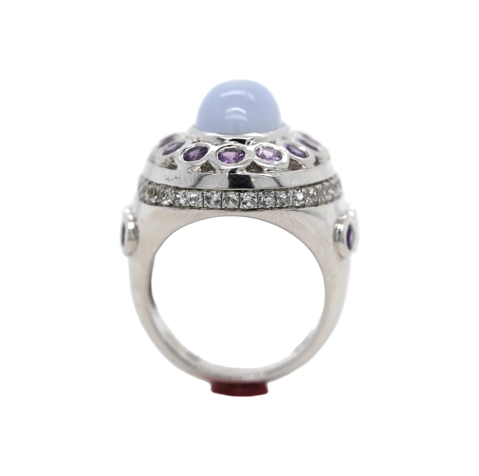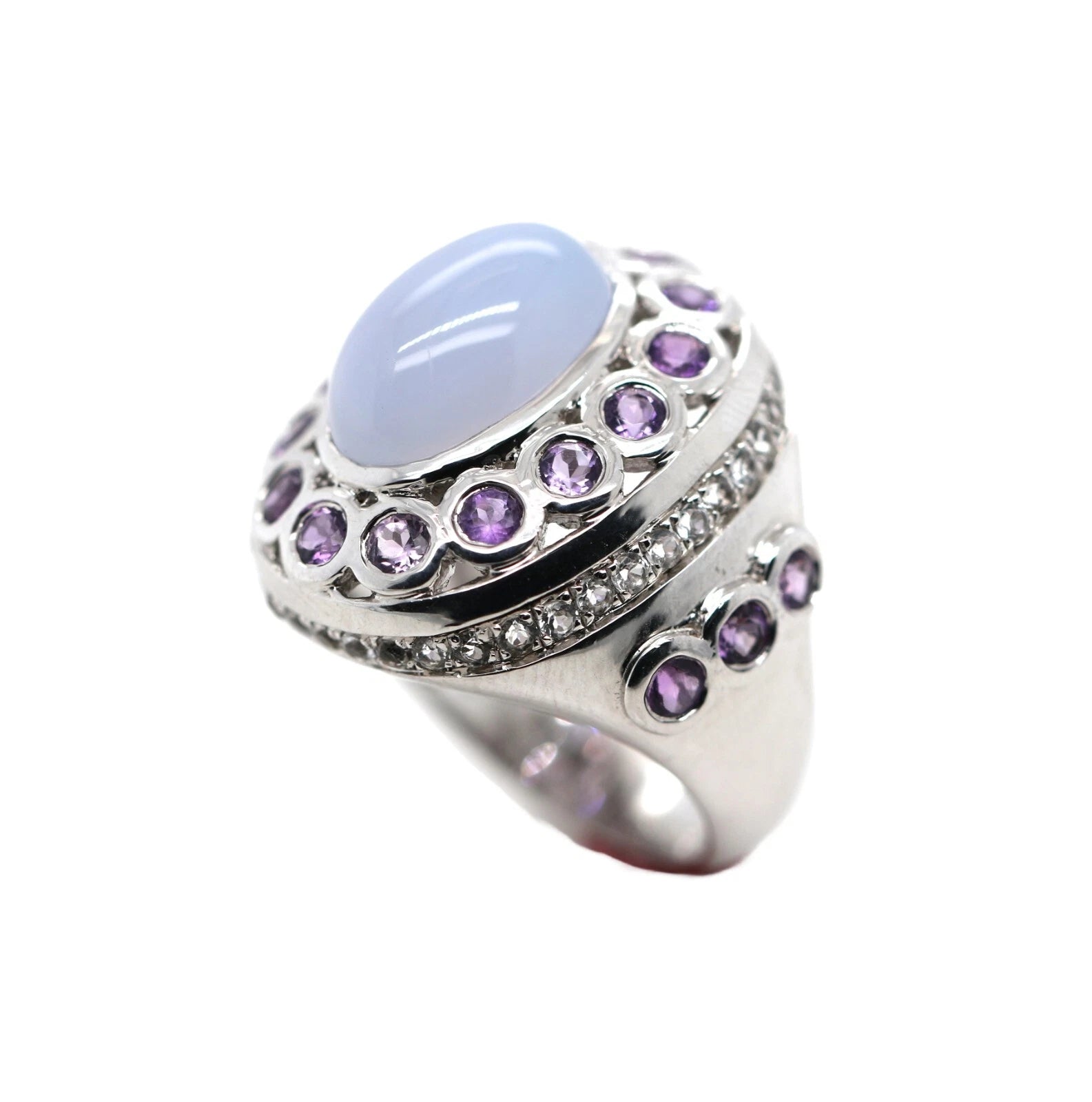 Amethyst- Blue Chalcedony - White Topaz Ring