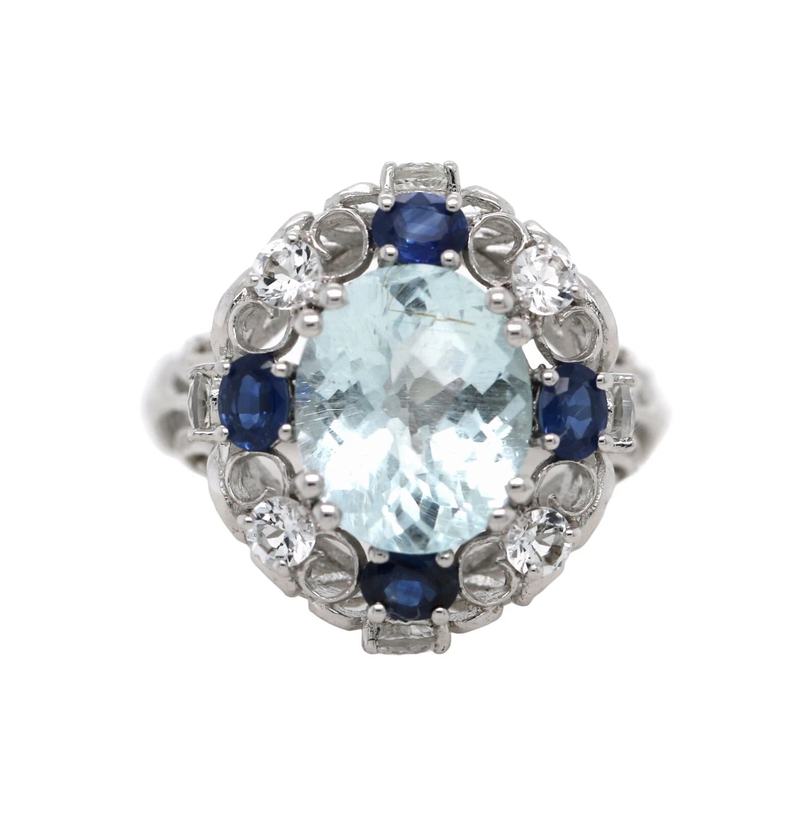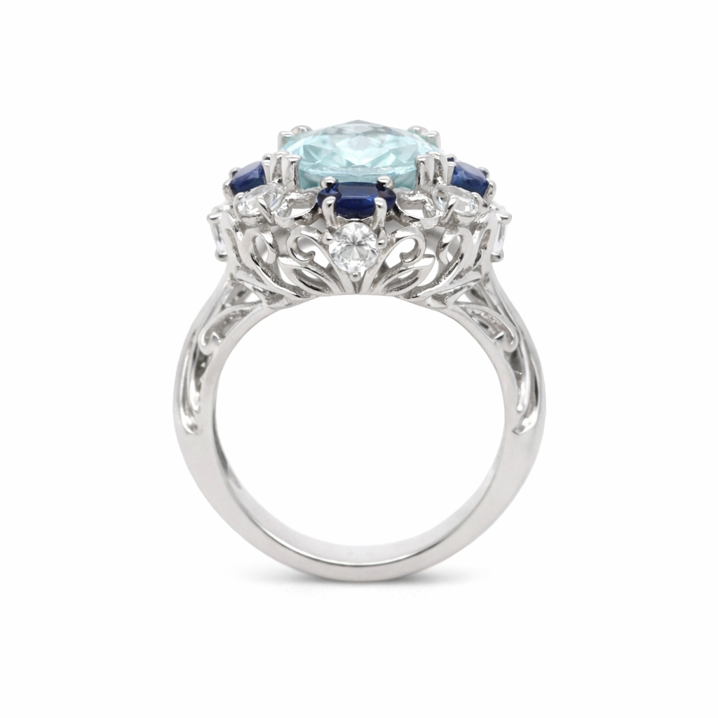 Aquamarine- Blue Sapphire- White Topaz Ring