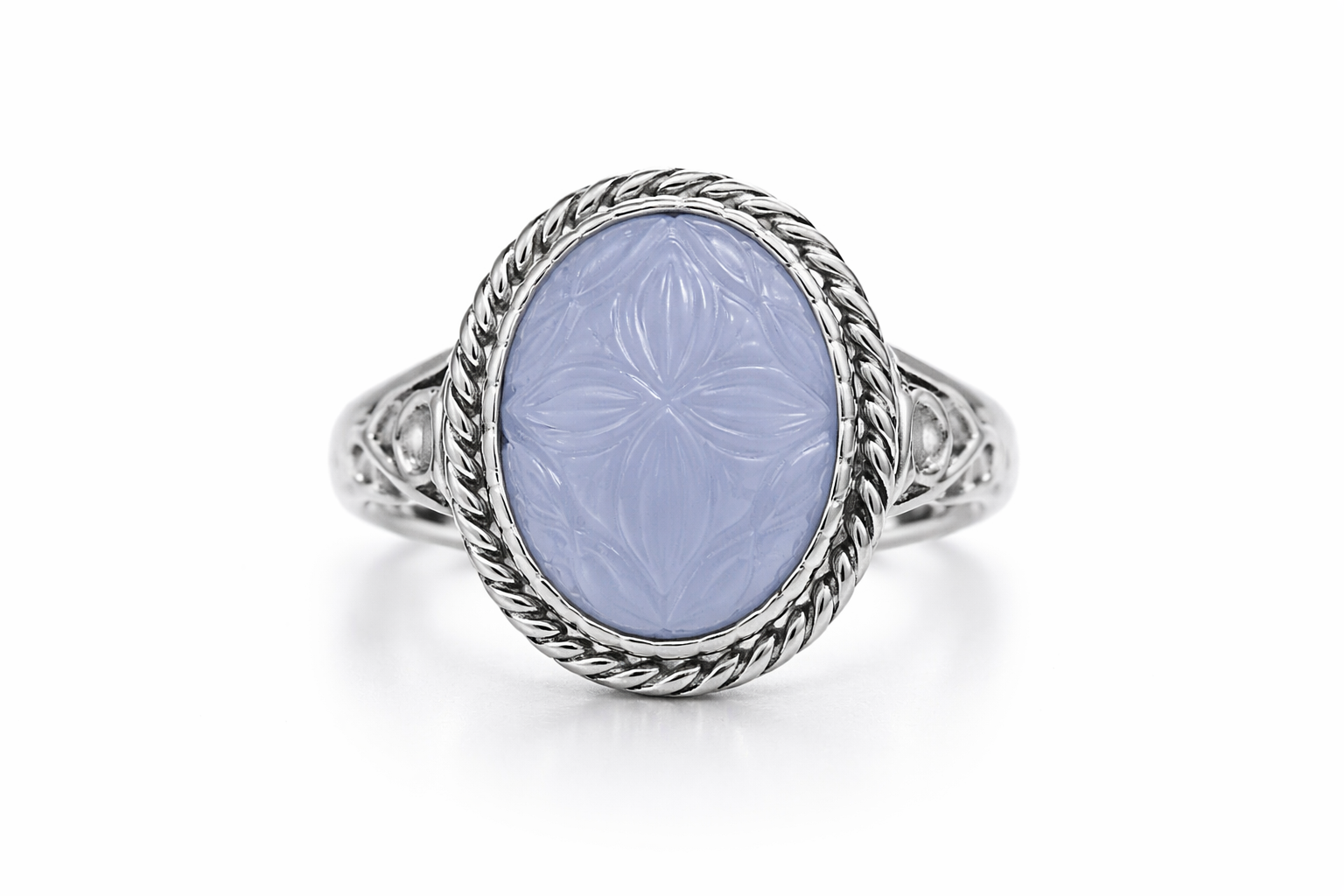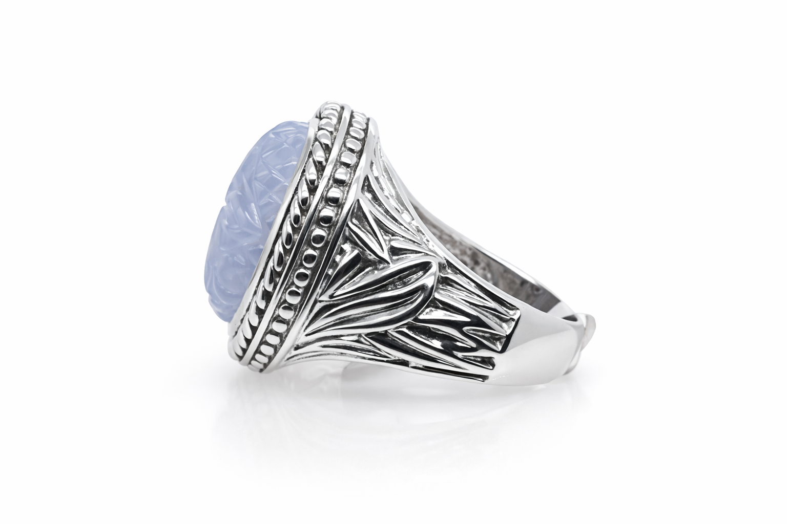 Beautiful Craved Chalcedony Silver Ring