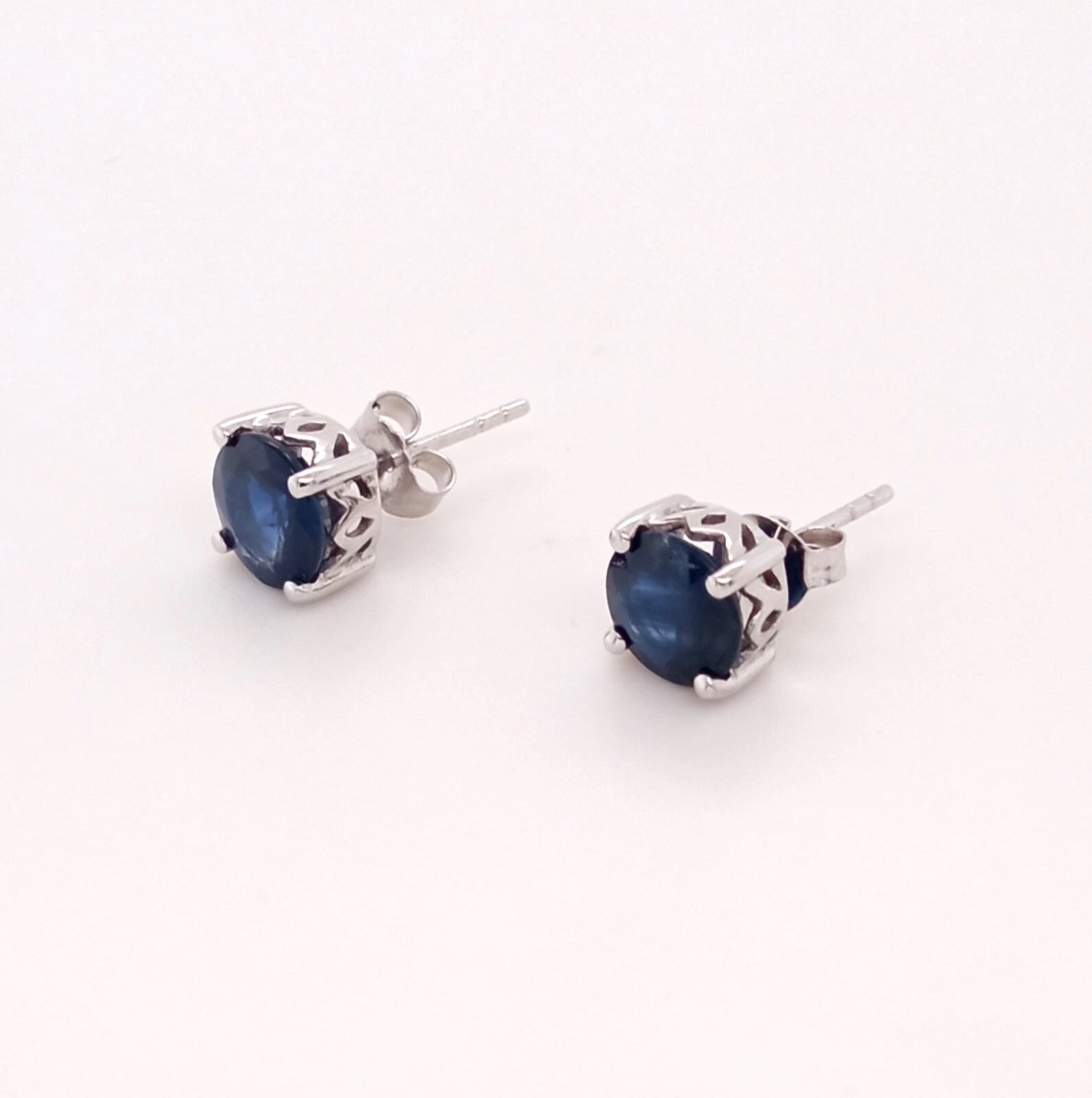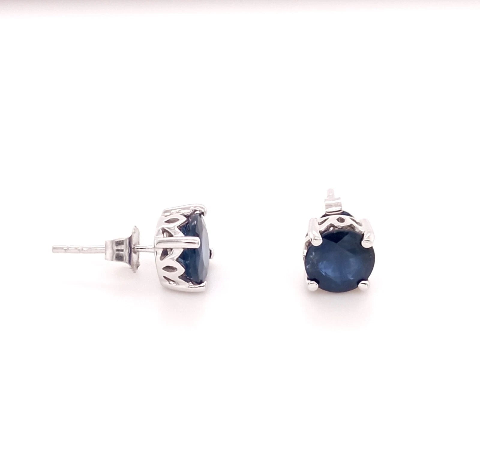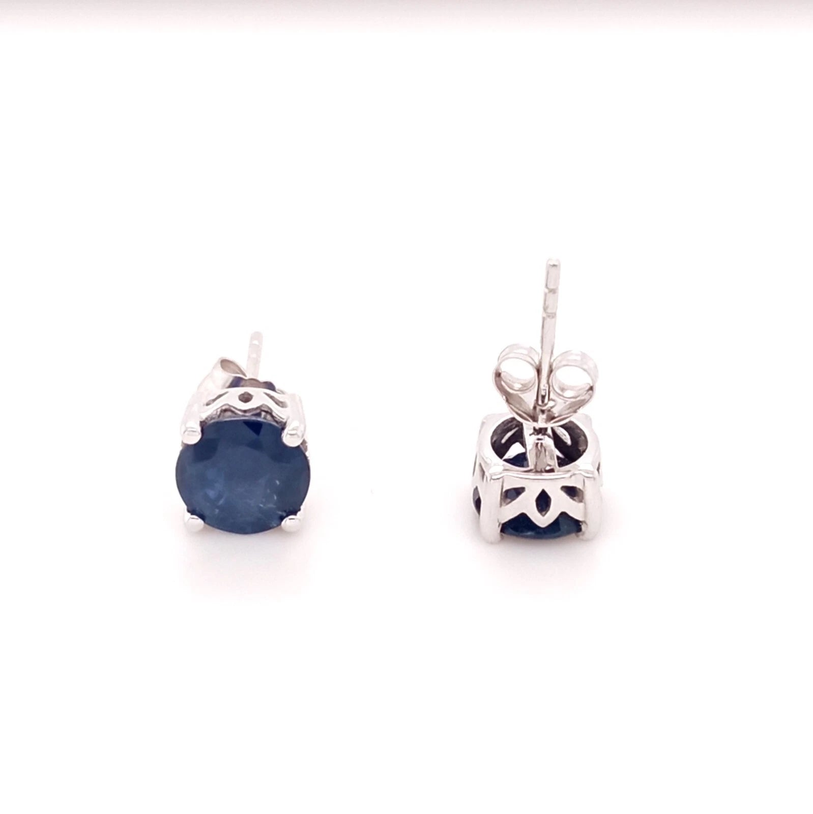 FABULOUS 14K SAPPHIRE ROUND STUD EARRING 7MM, 2DOT7 CTS