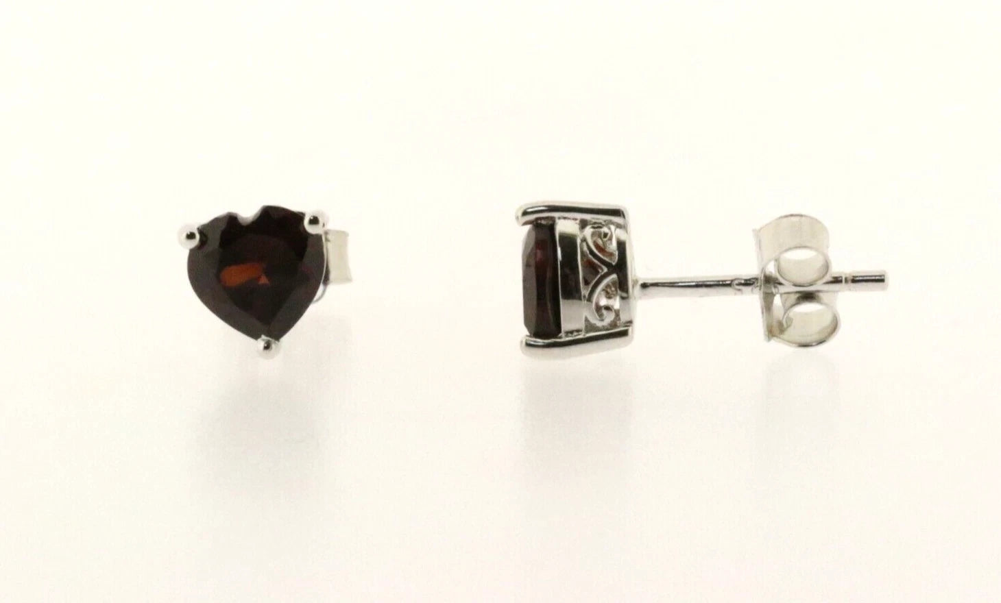 Heart-Shaped Garnet Heavy Push Back Stud Earring