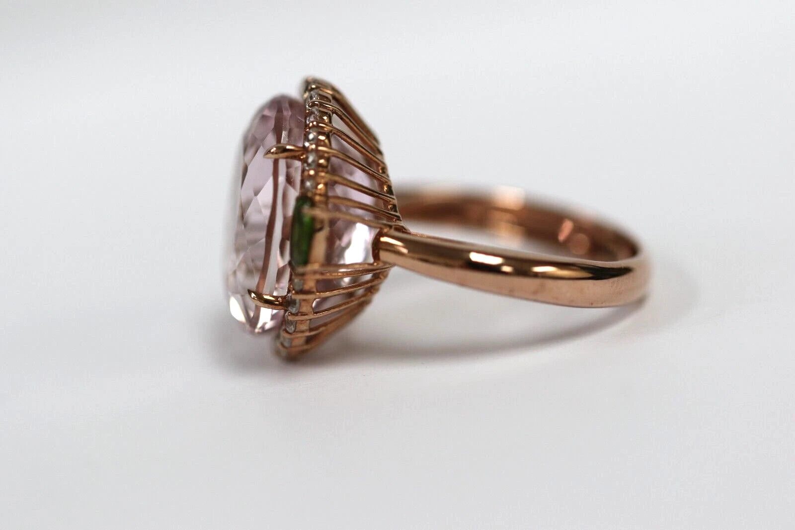 Kunzite - Chrome Diopside - White Sapphire Ring