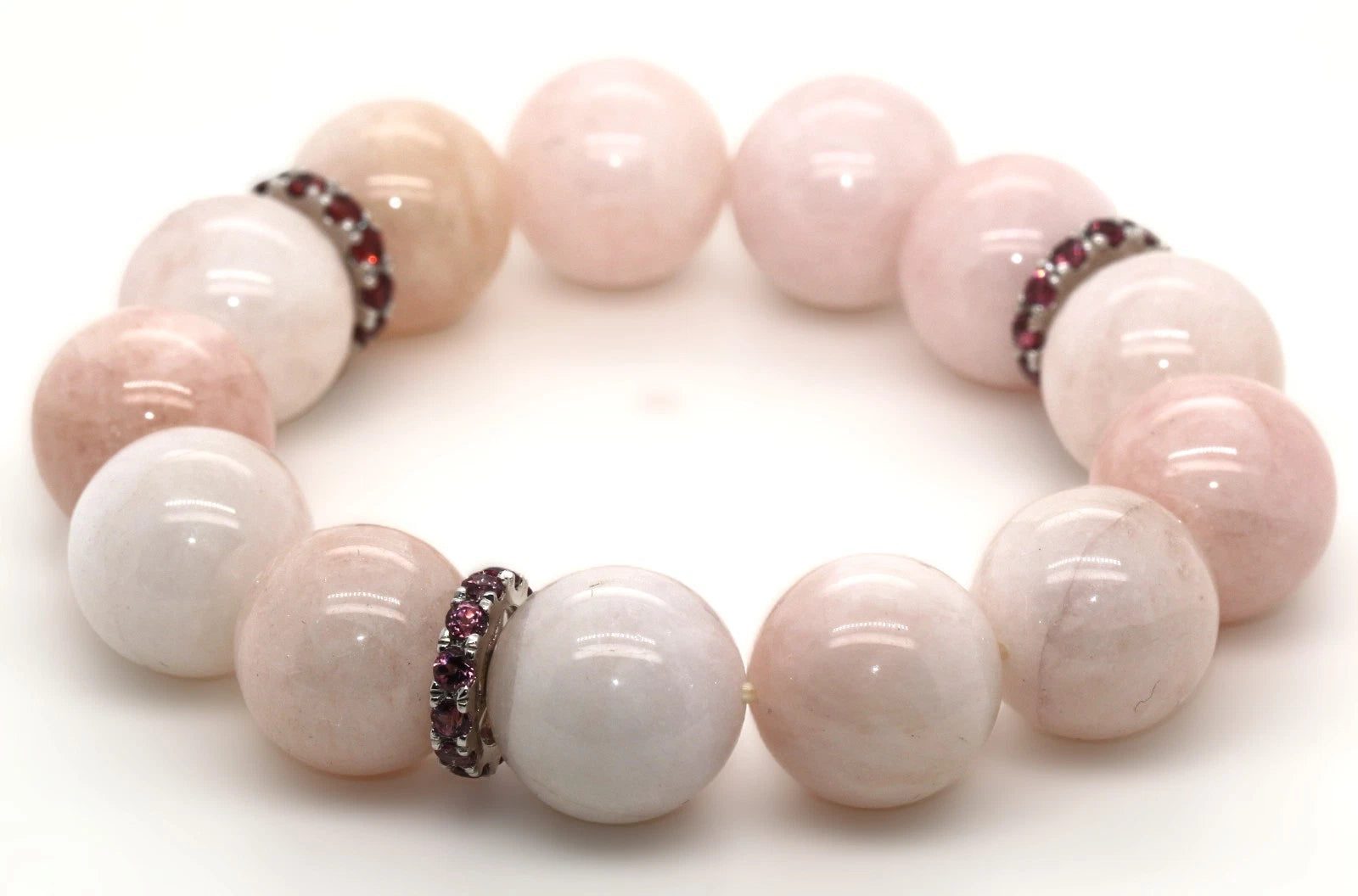 Morganite Bead A Quality - Rhodolite Garnet Stretch Bracelet