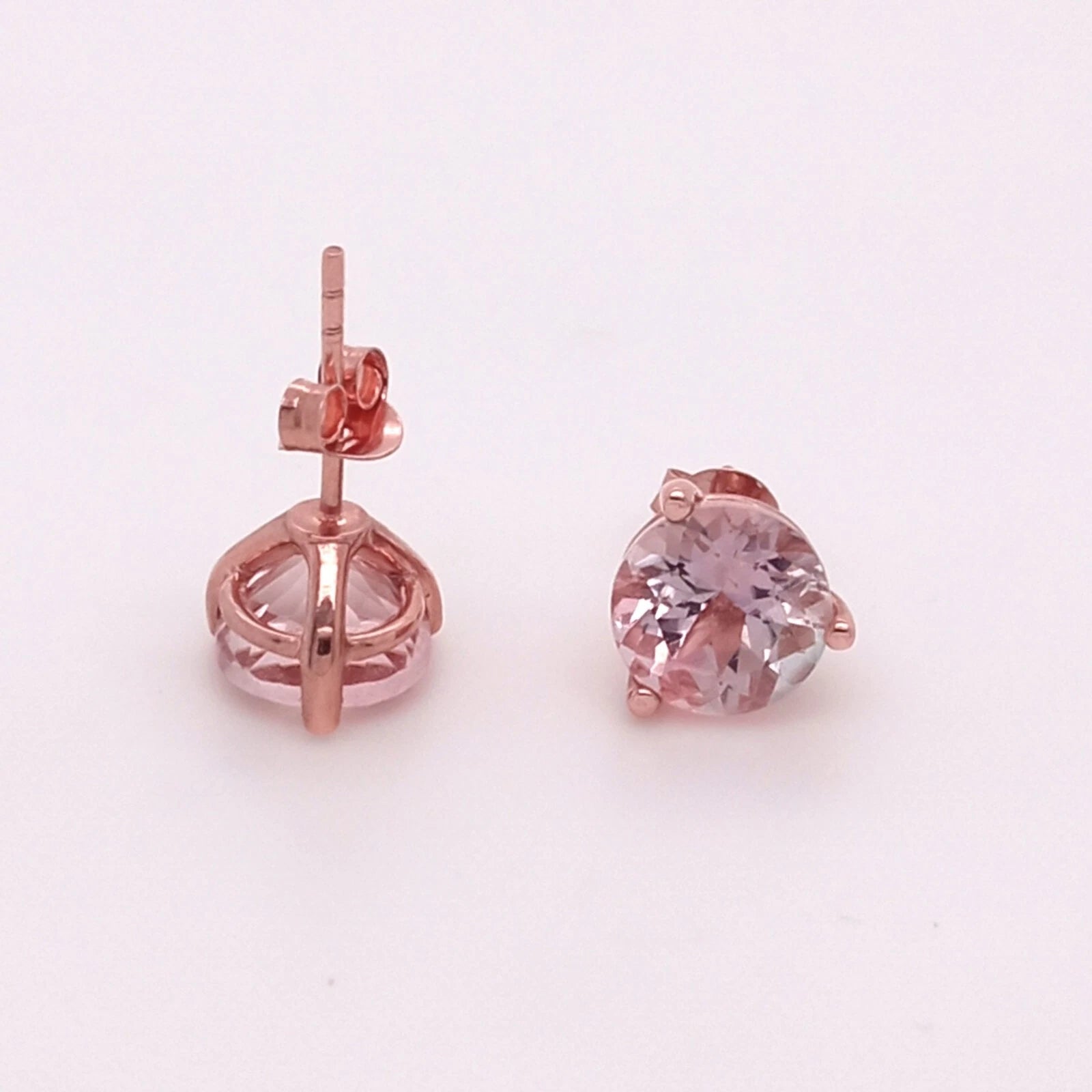 PERFECT 14K ROSE GOLD PINK ROUND TOURMALINE EARRING 8mm, HEAVY PUSH BACK