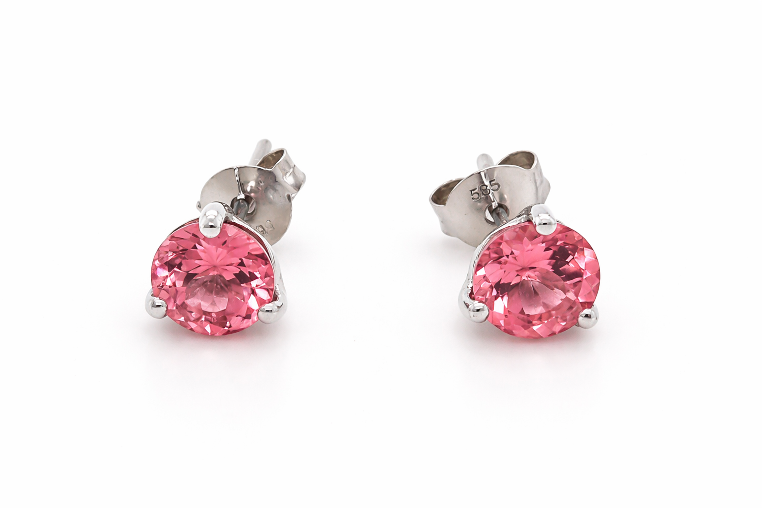 STUNNING 14K PINK TOURMALINE ROUND STUD EARRING 6MM, 1DOT56 CTS