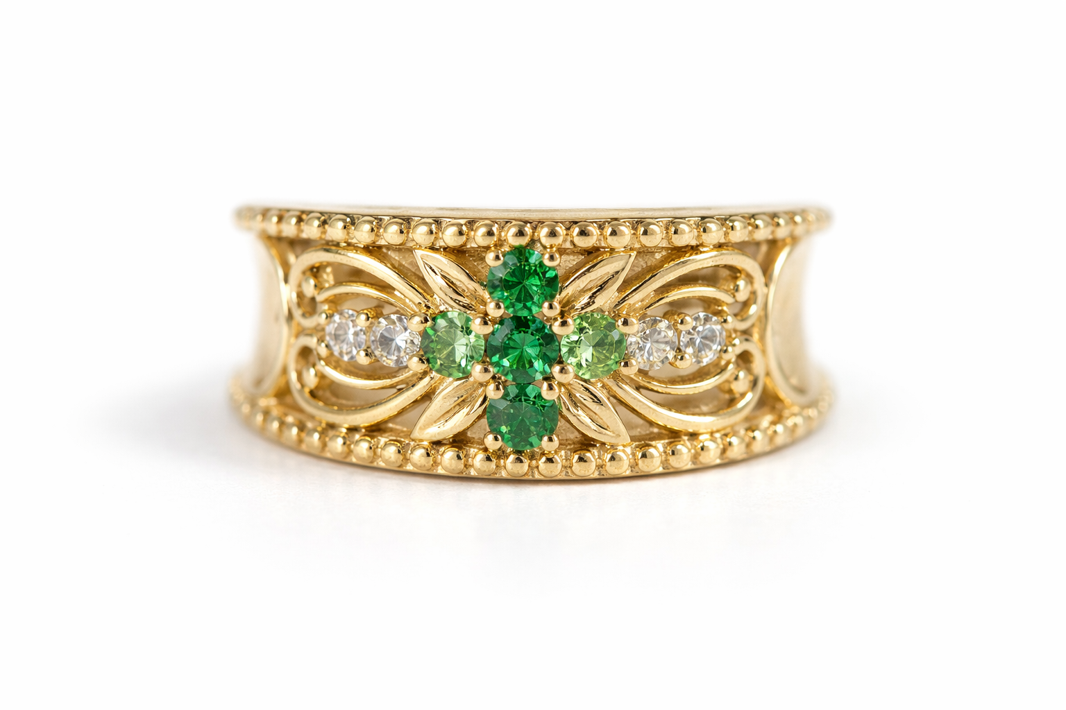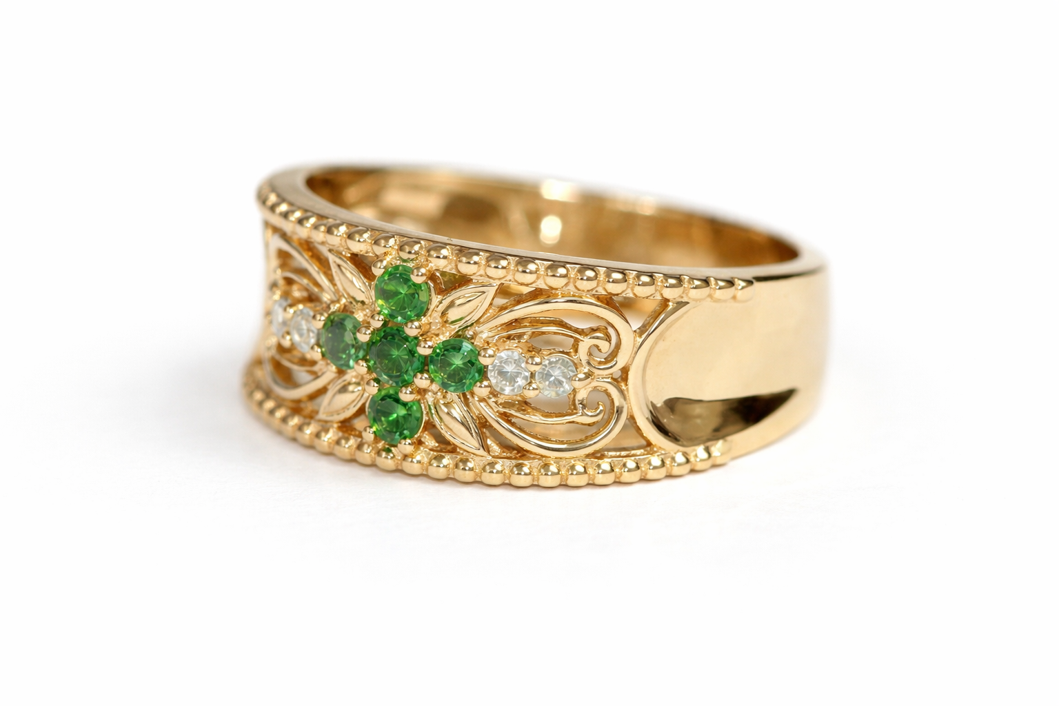 Tsavorite - Color Change Garnet - yellow gold plated ring